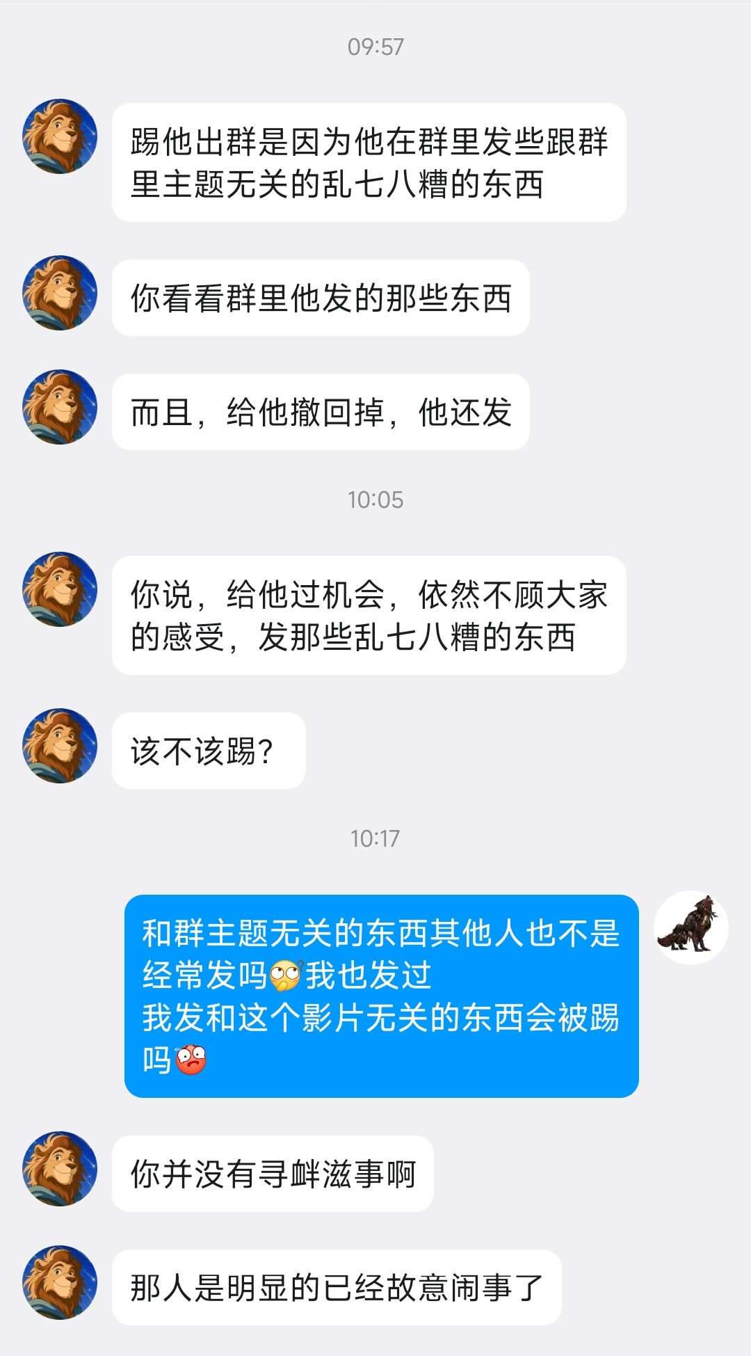 如果说“本群禁止无关内容”成立,那么前面不久前就有人发了和群聊主题无关的内容,也没见他们被处理呀