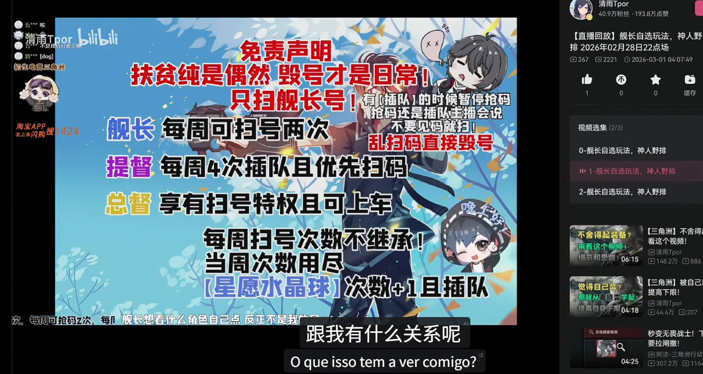 在B站游戏直播生态中, 「舰长」 是付费订阅等级(约每月198元)。清雨Tpor在直播间 单方面 制定规则:持有舰长资格的粉丝可将账号扫码授权给他代打;但若发现是非舰长扫码,则当场在直播间公开清空账号全部有价值物品,他将此称为 「村规」 。