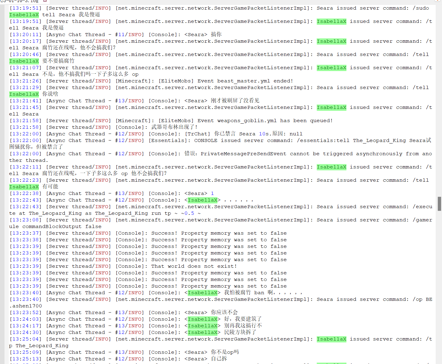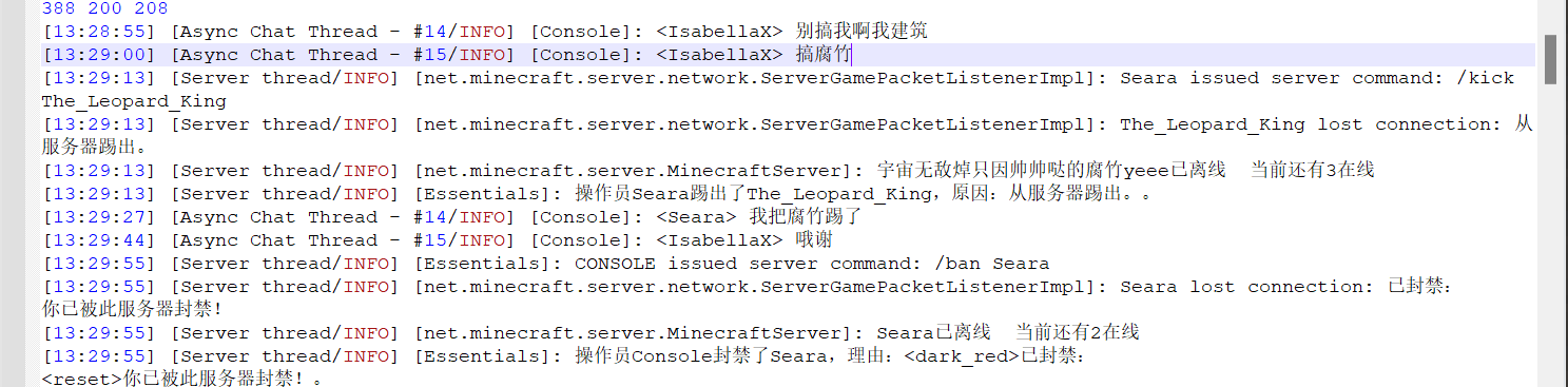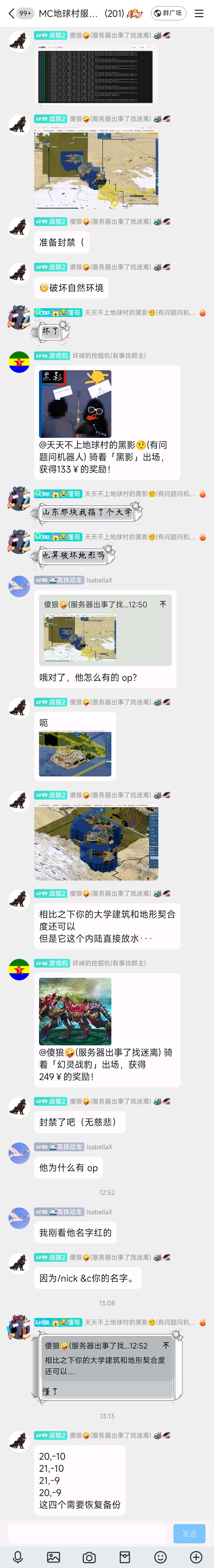 它在此前看起来还是比较正常的玩家,但是经常违规操作,以及在管理员调试的时候屡次骚扰,因为卡服和损坏地形已经多次被封禁