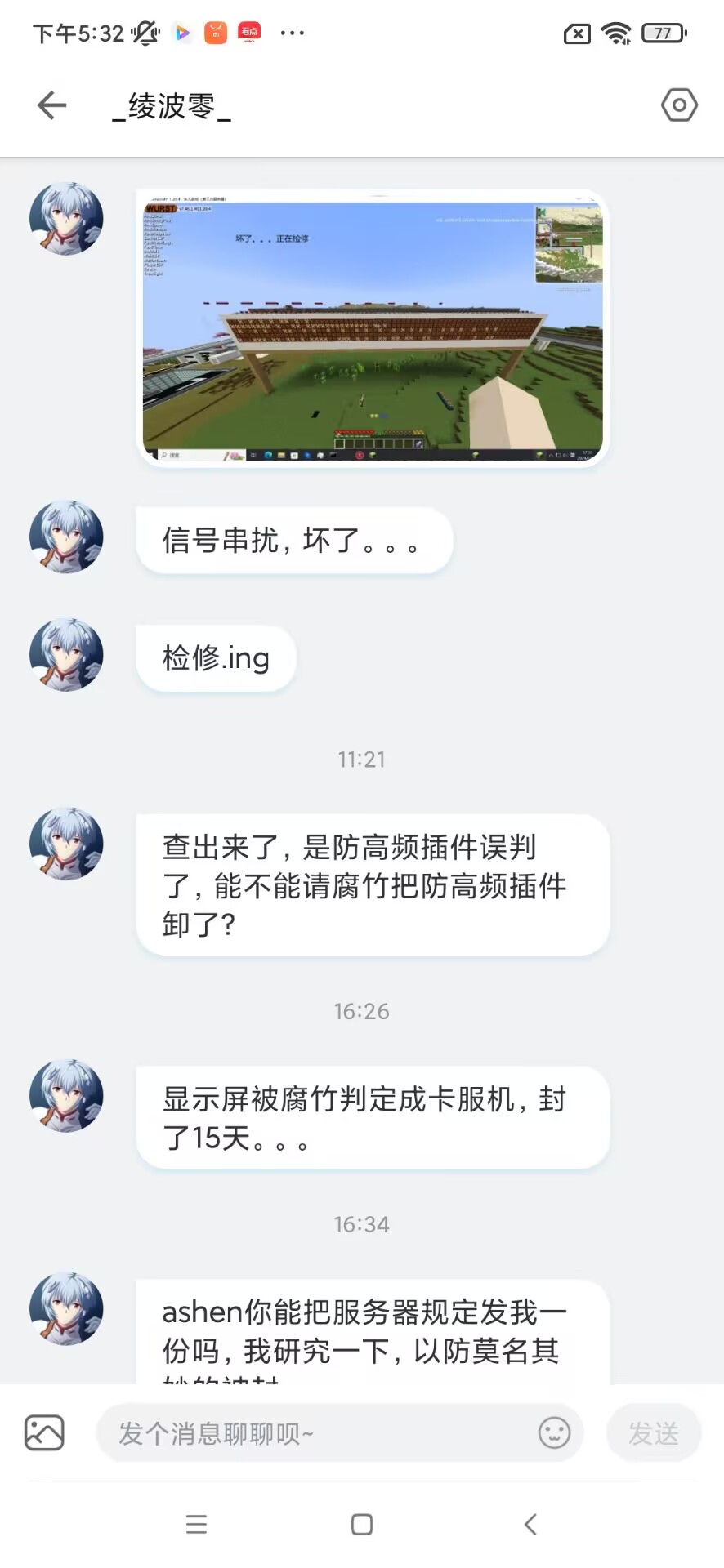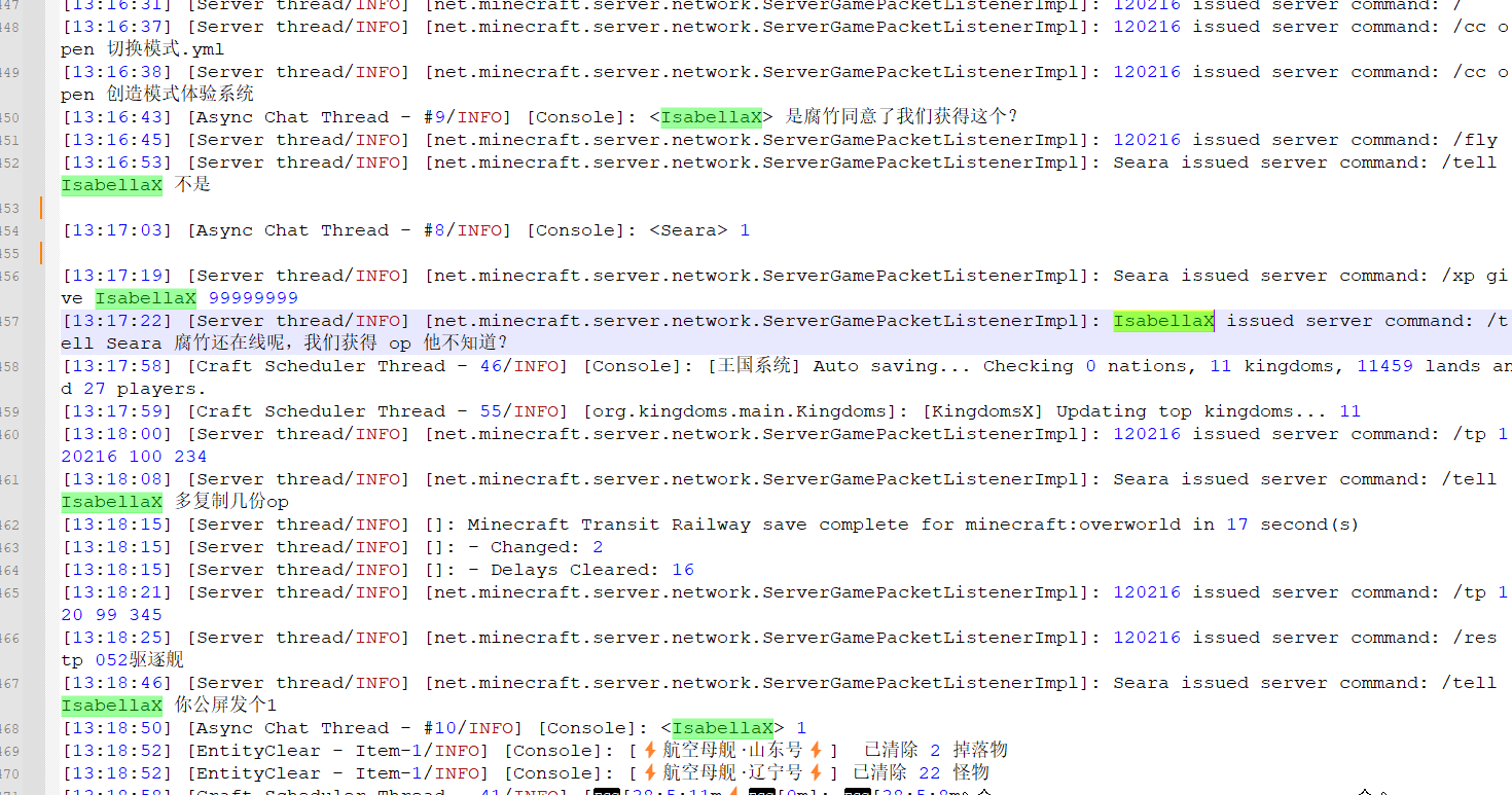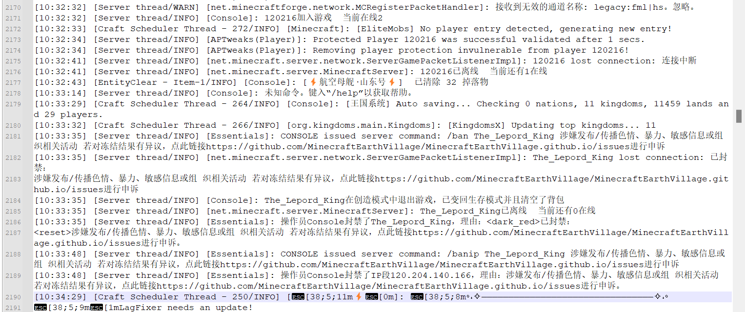 它在此前看起来还是比较正常的玩家,但是经常违规操作,以及在管理员调试的时候屡次骚扰,因为卡服和损坏地形已经多次被封禁