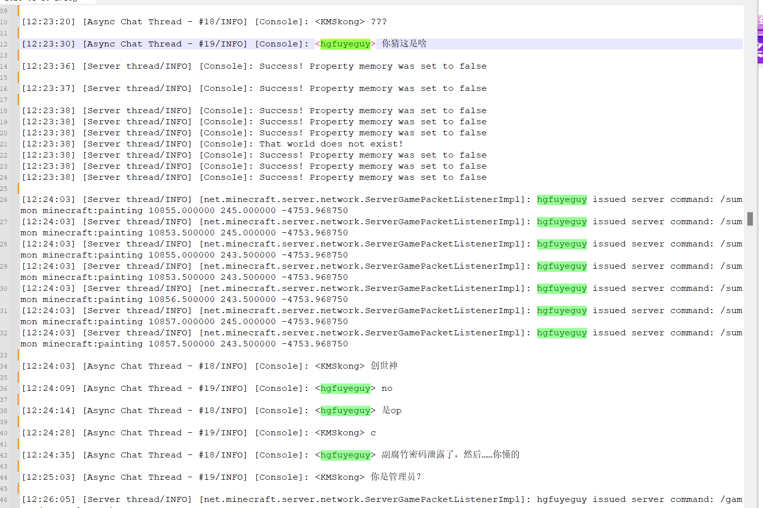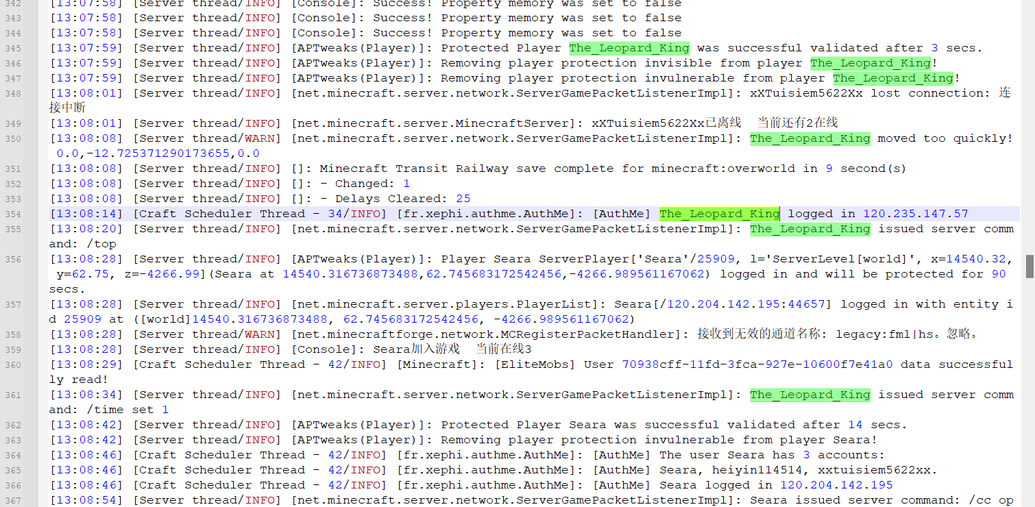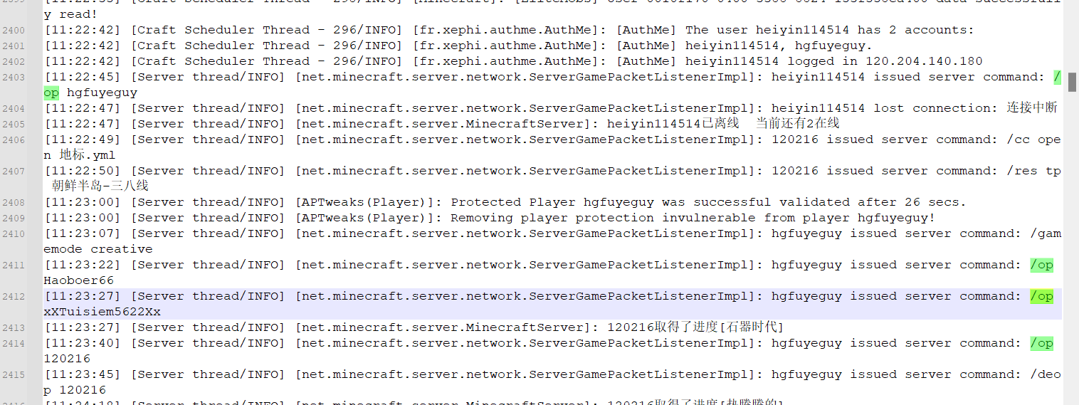 12:47服务器重启完毕,入侵者小号和大号同步进入