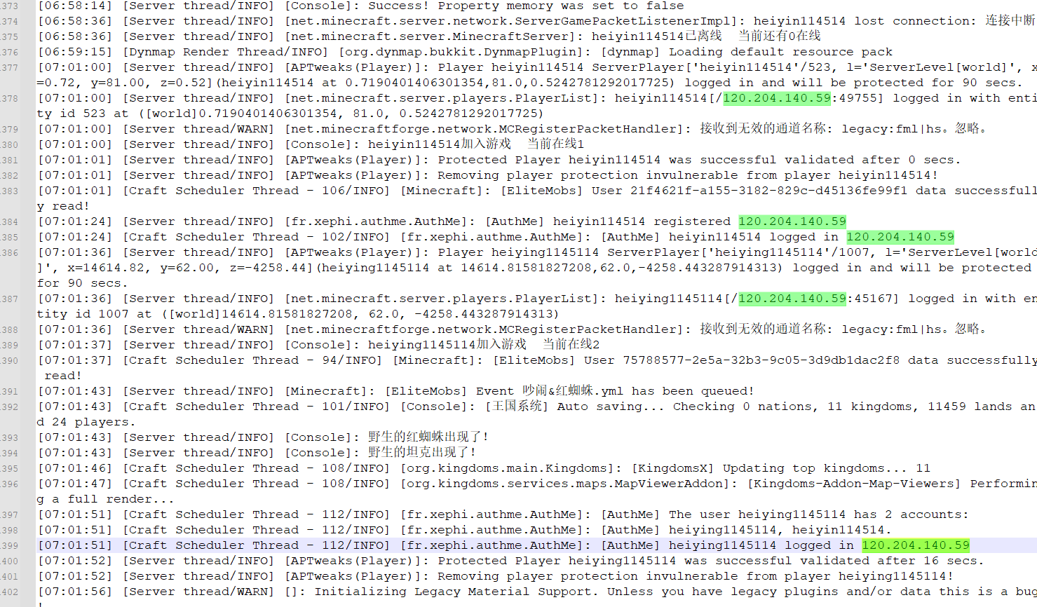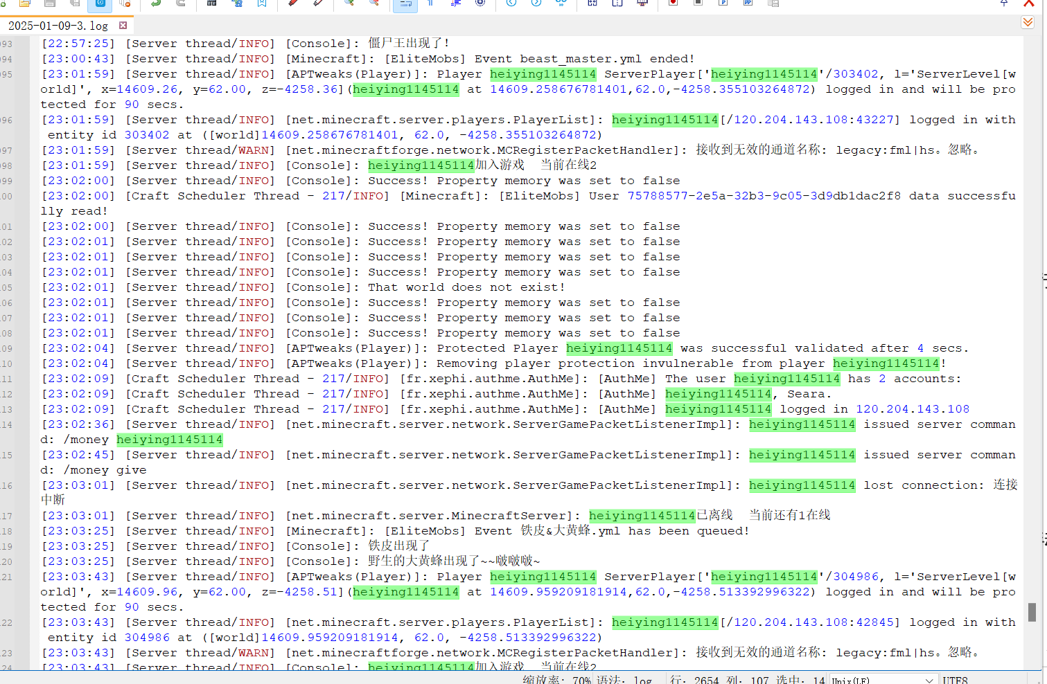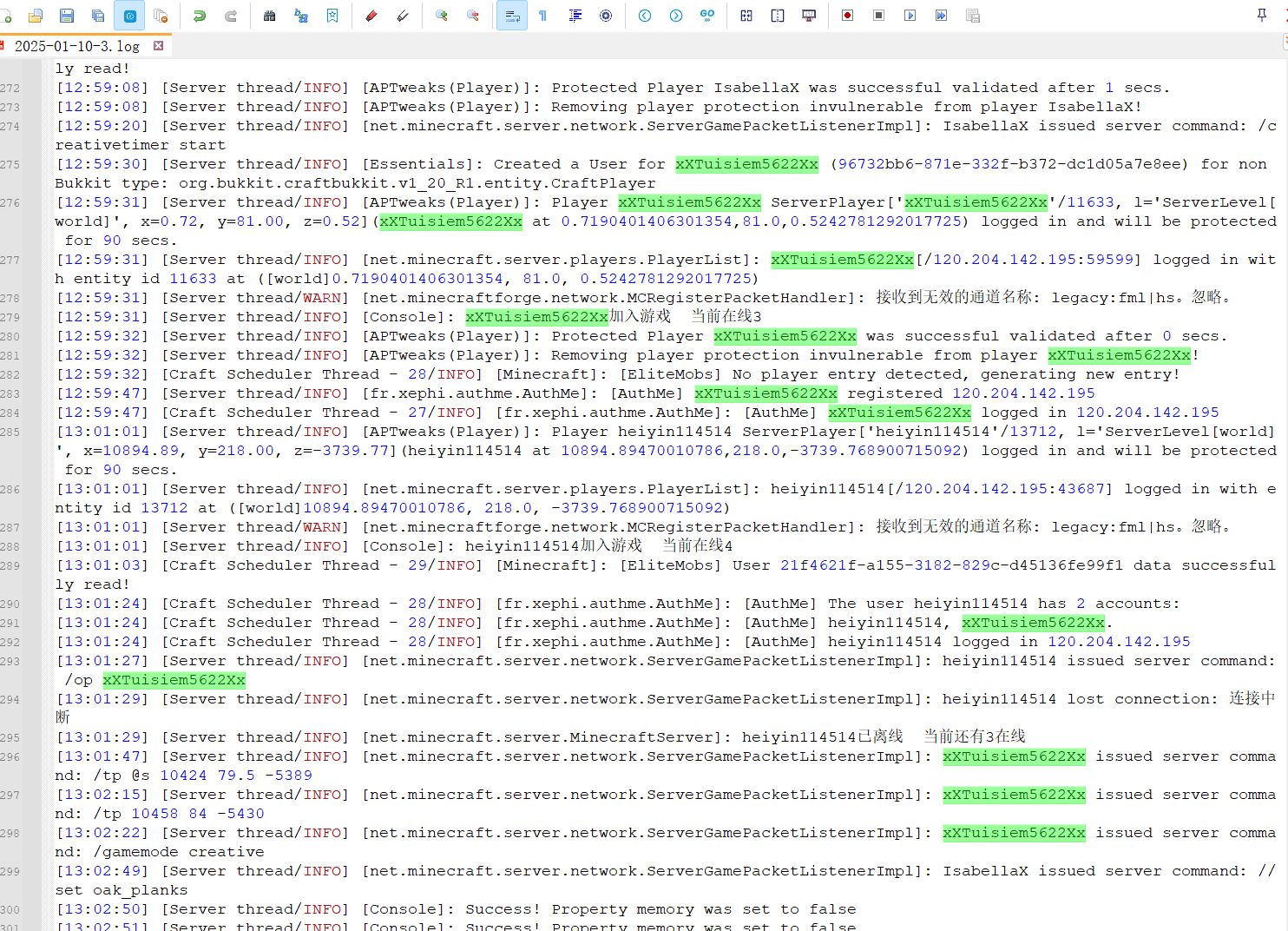 12:47服务器重启完毕,入侵者小号和大号同步进入