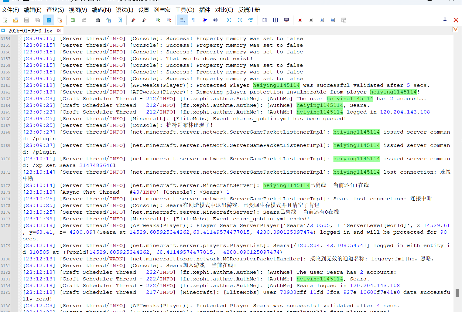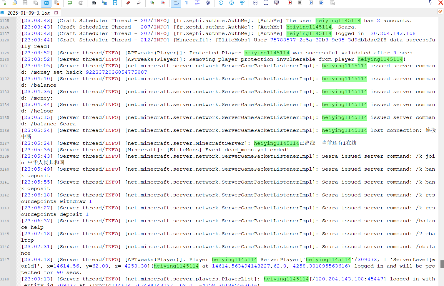 盗号者Seara在1月9日首次进入服务器,注册IP为上海120.204.143.108