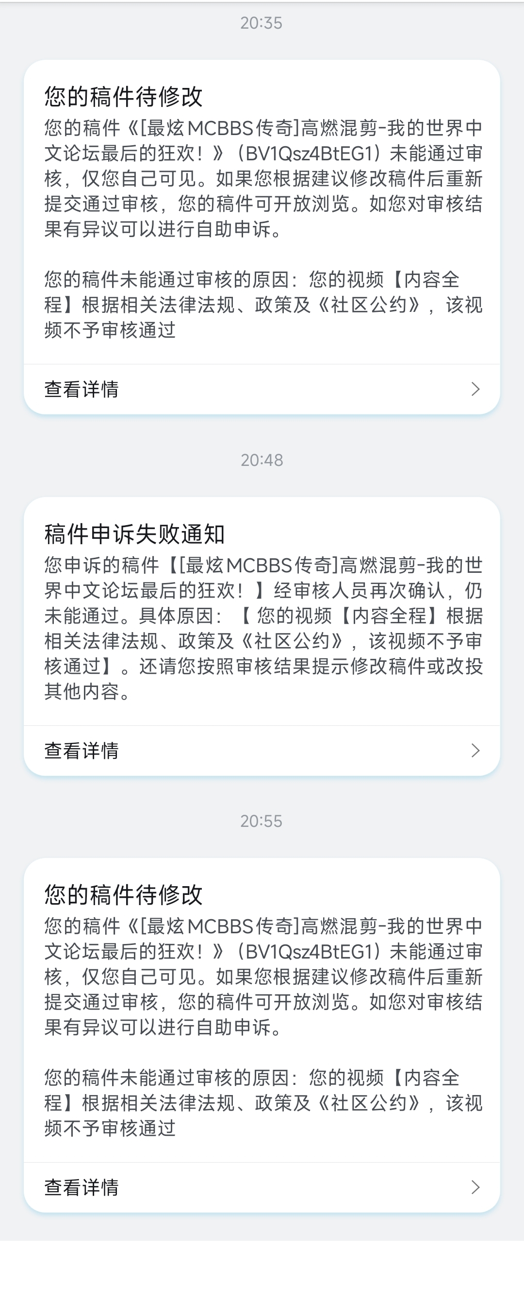这个事情由来已久,只要在B站发布所谓“抹黑”MCBBS的视频就会被封禁365天