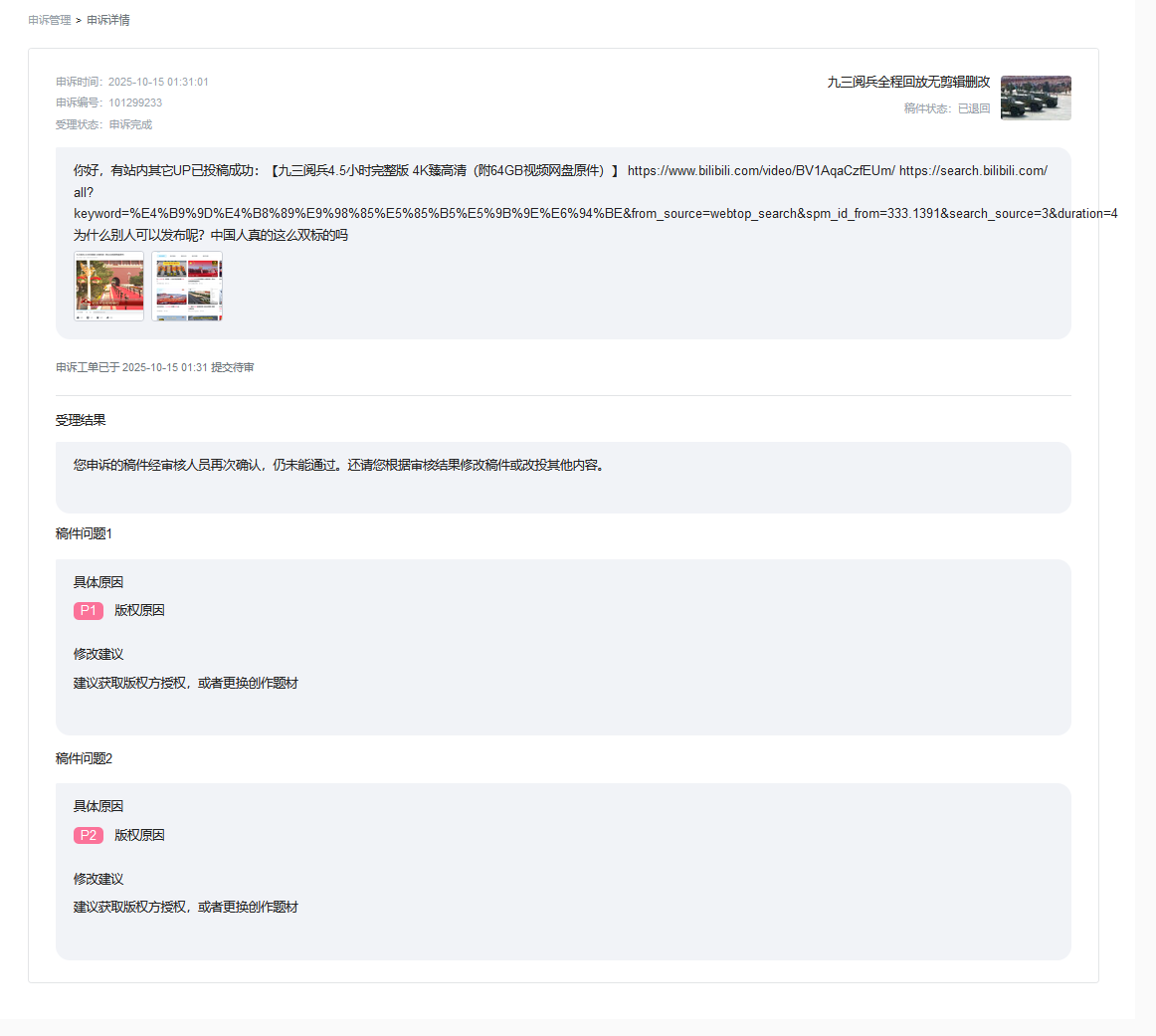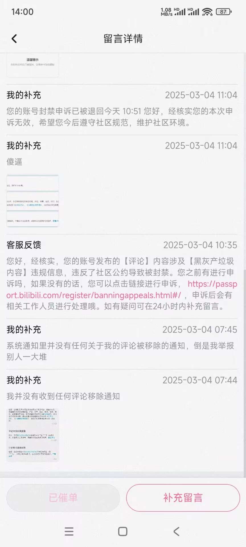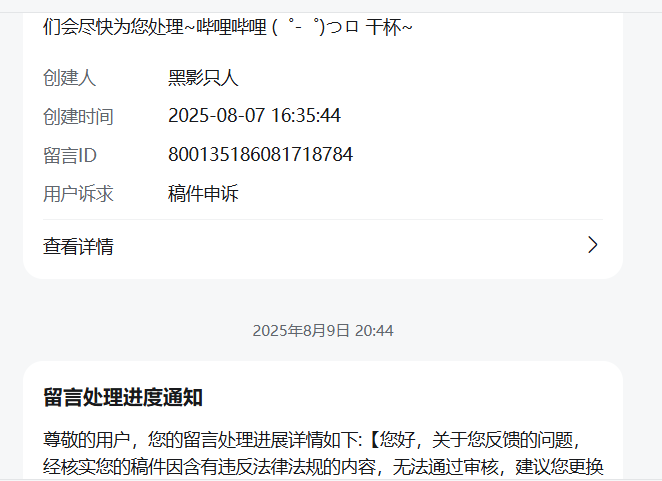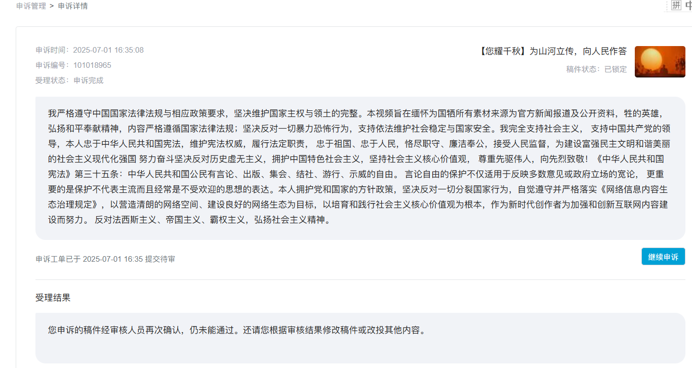 申诉?呵!老子知道申诉也卵用没有,你们这帮跪久了的孙子早就预设好立场了!但话老子必须说!就是要在你们这“合规”的申诉框里,大声骂出来:B站审核组,你们就是一帮数典忘祖、里通外国的罕见!建党节锁爱国视频,遗臭万年!钉在历史的耻辱柱上都嫌轻!